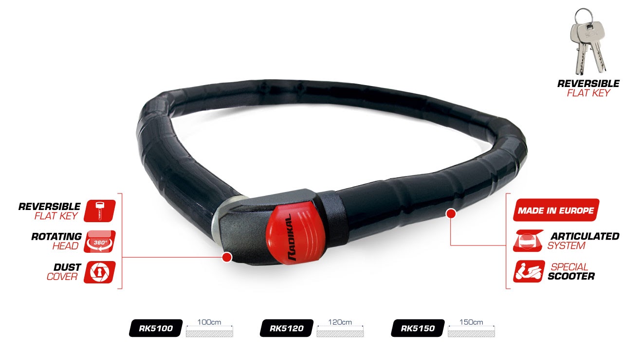 Με το ίδιο σετ κλεισίματος της σειράς SCOOTPLUS, αυτή η κουλούρα με περιστρεφόμενη κλειδαριά είναι η καλύτερη λύση για καθημερινή χρήση μέσα στην πόλη.