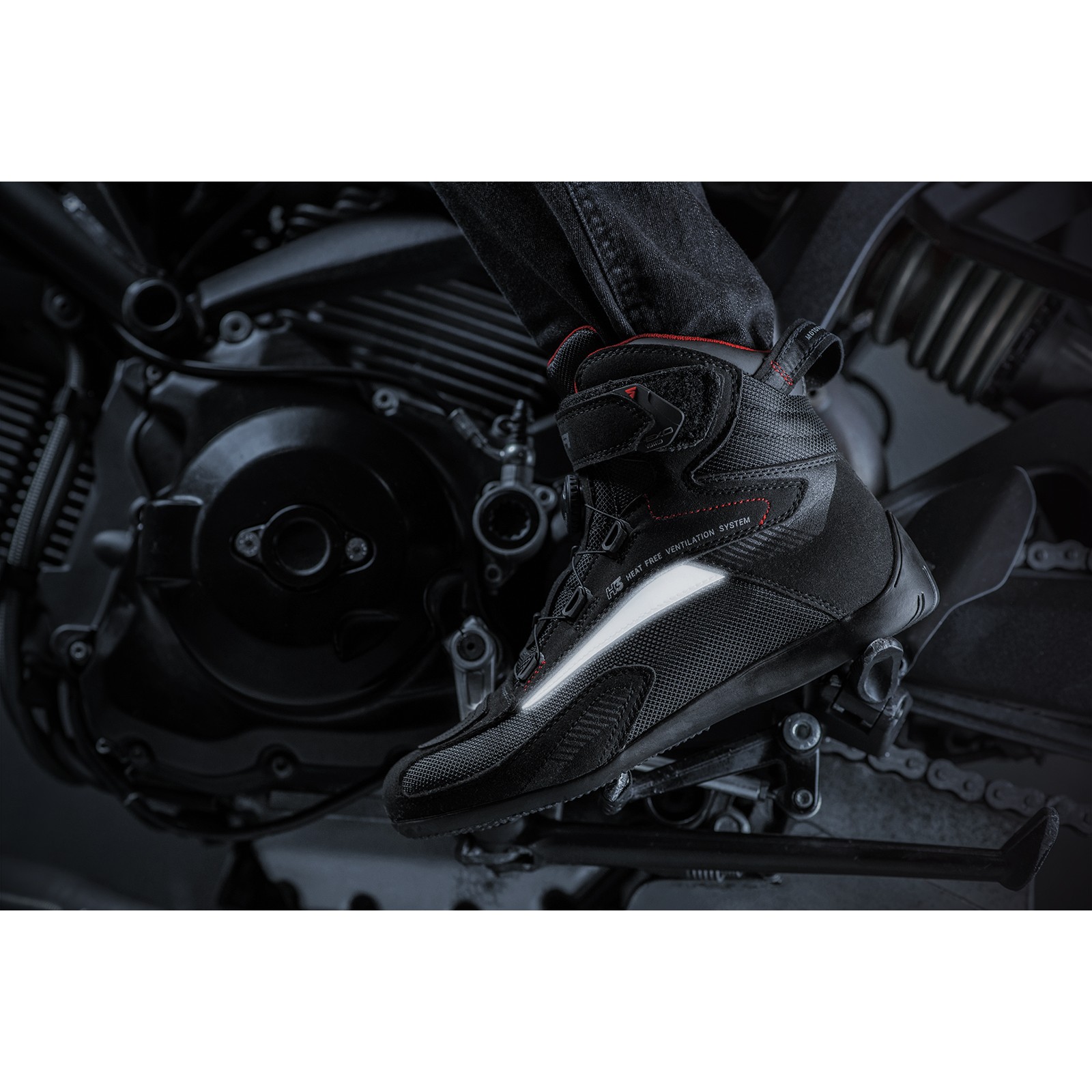 Η οδήγηση την νύχτα αποκτά νέο νόημα με το EXO Vented. Χάρη στα έξυπνα σχεδιασμένα και διακριτικά αντανακλαστικά σημεία, θα είστε ορατοί ακόμα και στο σκοτάδι για να φτάσετε στον προορισμό σας με ασφάλεια. Προσφέρουν λειτουργικότητα, άνεση και διακριτικό στυλ. Διαθέτουν ισχυρή ενίσχυση στα σημεία που εκτίθενται περισσότερο σε τραυματισμούς κατά τη διάρκεια της πτώσης. Ειδικά σχεδιασμένο για να προσφέρει άψογη στήριξη και εξοπλισμένο με πρόσθετες ενισχύσεις στα δάχτυλα των ποδιών, τον αστράγαλο και την φτέρνα για μεγαλύτερη σταθερότητα και αυτοπεποίθηση κατά την οδήγηση.
