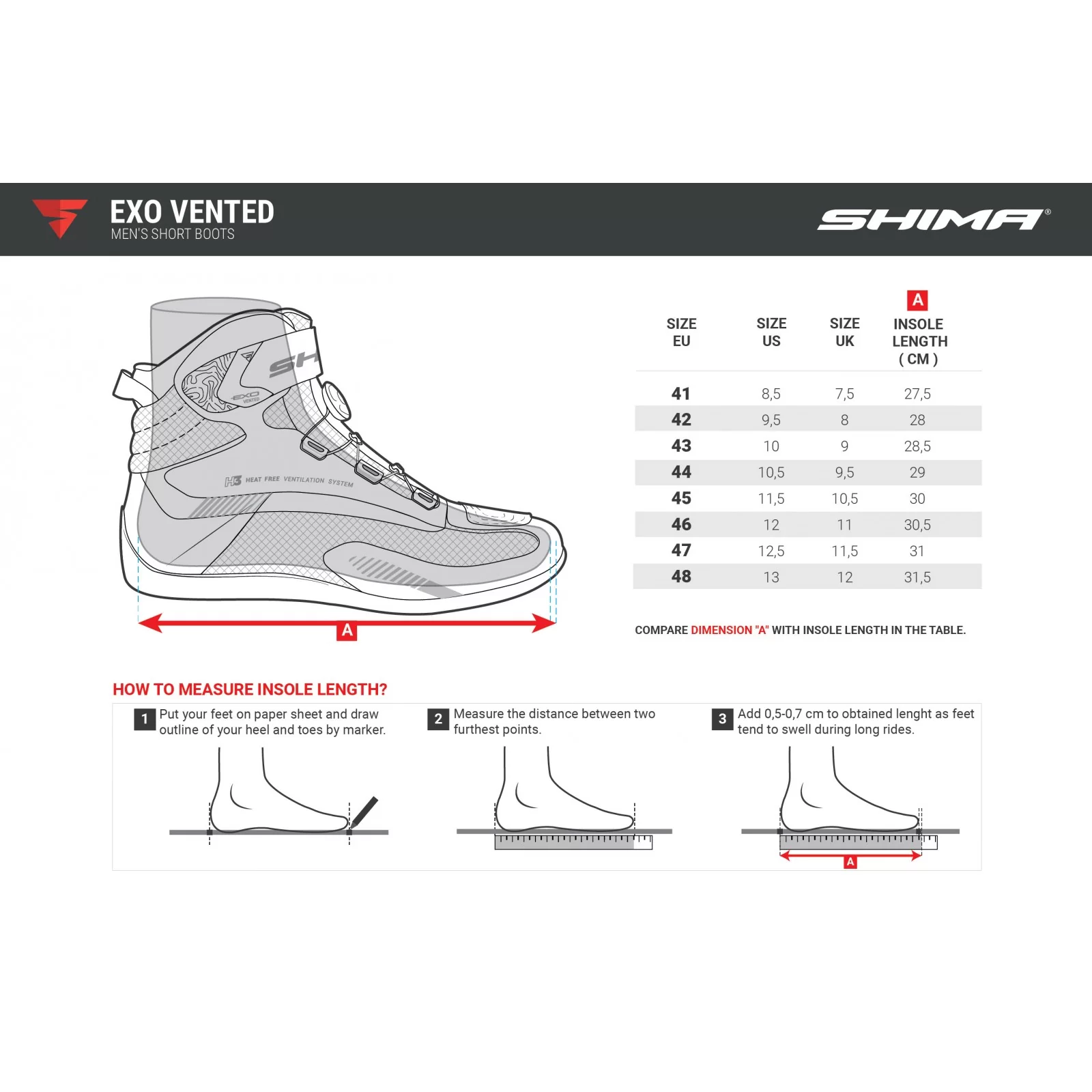 Ζήστε μια νέα εμπειρία οδήγησης κάθε μέρα με τα ειδικά διαμορφωμένα πάνελ αερισμού. Σχεδιασμένες με γνώμονα την άνεση, οι μπότες EXOVented διαθέτουν πάνελ αερισμού σε στρατηγικά σημεία ώστε να εξασφαλίζουν την ελεύθερη ροή του αέρα για τα πόδια σας. Μπότες με υψηλό αερισμό, ιδανικές για βόλτες με υψηλές θερμοκρασίες.
