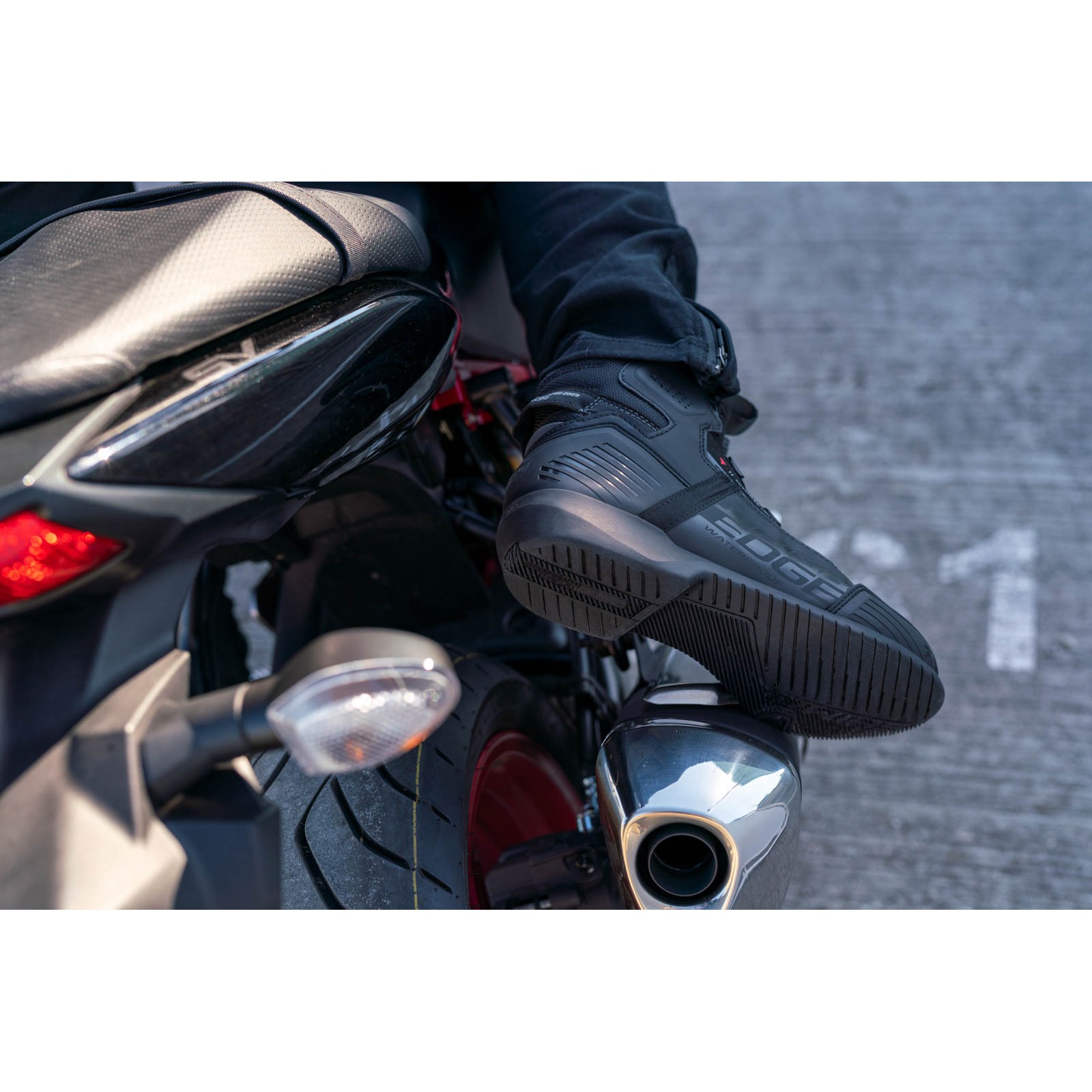 Διαθέτουν έναν νέο τύπο σόλας που κατασκευάζεται με την τεχνολογία ESG™ της SHIMA– με ενισχυμένη επιφάνεια για την πρόσφυση που εγγυώνται μέγιστη προστασία. Η ασφάλειά σας διασφαλίζεται επίσης από την εσωτερική σόλα και το προστατευτικό αστραγάλου SAP™ από TPR, ενώ οι περιοχές της φτέρνας, του αστραγάλου και των δακτύλων έχουν ενισχυθεί επιπλέον. Το EDGE WP διαθέτει λουράκι που διευκολύνει το τράβηγμα του παπουτσιού και το πρωτοποριακό σύστημα κορδονιών ATOP, το οποίο μπορεί εύκολα να λειτουργήσει μόνο με το ένα χέρι. Κάνοντας το ακόμα πιο άνετο στην χρήση, το μοντέλο EDGE WP διαθέτει ενίσχυση στην περιοχή του μοχλού αλλαγής ταχυτήτων και ειδική αυλάκωση για να σας βοηθήσει να βρείτε τη σωστή θέση του ποδιού. Τα αντανακλαστικά στοιχεία θα σας κρατήσουν ορατούς ακόμα μέσα στο σκοτάδι. Το EDGE WP είναι ο τέλειος συνδυασμός ασφάλειας, άνεσης και στυλ.